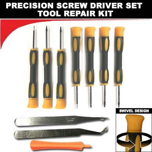Item 1 - 7 : Magnetized tips precision torx screw driver. Sizes : T3, T4, T5, T6, T7, T8, T10. Durable with precision cut sizes to ensure you can get the job right like a professional. Support end (blue color ends) give you the ability to turn the screw driver and holding it still, and magnetized tips to hold the screws to avoid dropping the tiny parts. Use this kit to repair cell phones, laptops, glasses or other precisions works. Item 8 : Safe plastic plying tool, reliable so you can easily plying something not damaging or make marks Item 9 : Flat head precision screw driver. Compatible: Use this tool kit to repair / installation your cell phone such Motorola phones, Lg phones, Samsung phones, Treo Palm, Blackberry, Htc, Audiovox Pda Smartphone and more.