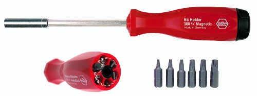Wiha Torx Multi-Bit Screwdriver Six tools in one! Chambered bit holder equipped with transparent selector and 6 bits. Wiha Powerhandle, cellulose-acetate, impact resistant. Snap-lock rotatable cap. 1/4 inches.magnetic bit holder directs magnetism through the bit for powerful screw holding. 1/4 inches.Torx bits include: T5, T6, T7, T8, T9, T10